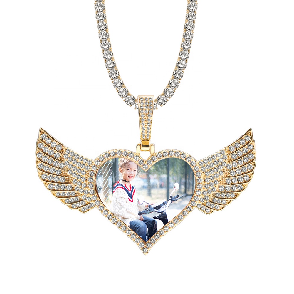 Nieuwe Aangepaste Foto Foto Memory Medaillons Sublimatie Hart Hanger Kettingen Hiphop Bling Sieraden Kubieke Zirkoon Hart Ketting