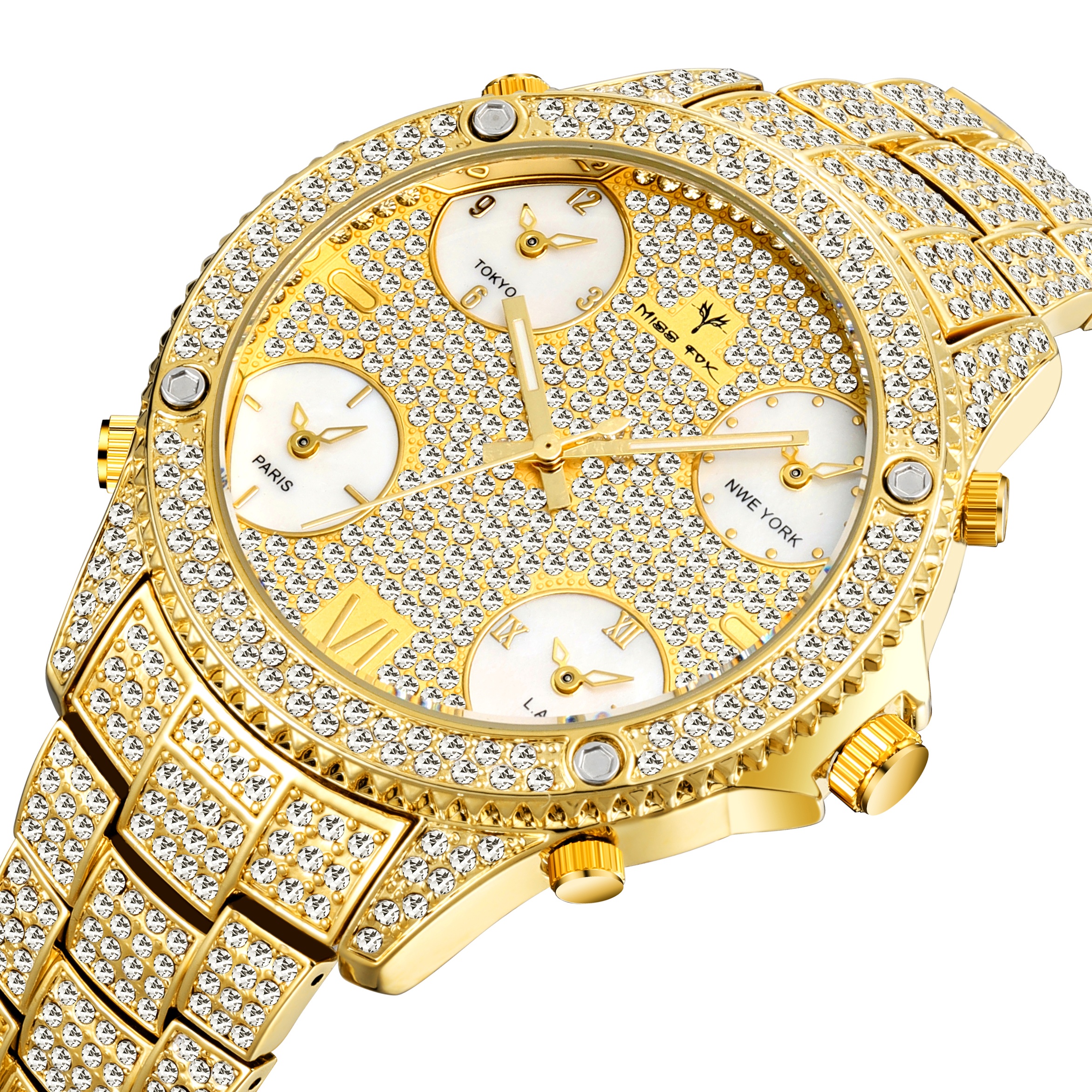 جديد أزياء الرجال الساعات الكبيرة قوس قزح العلامة التجارية الفاخرة 18k الذهب أزياء ساعة معصم الرجال أعلى بيع مثلج خارج الكوارتز ساعة معصم هدية