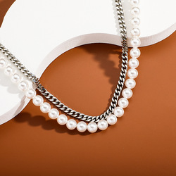 Двухслойная жемчужная цепь светлая Роскошная ниша изысканное ожерелье Чрезвычайно простой стиль металлическая цепочка жемчужные украшения