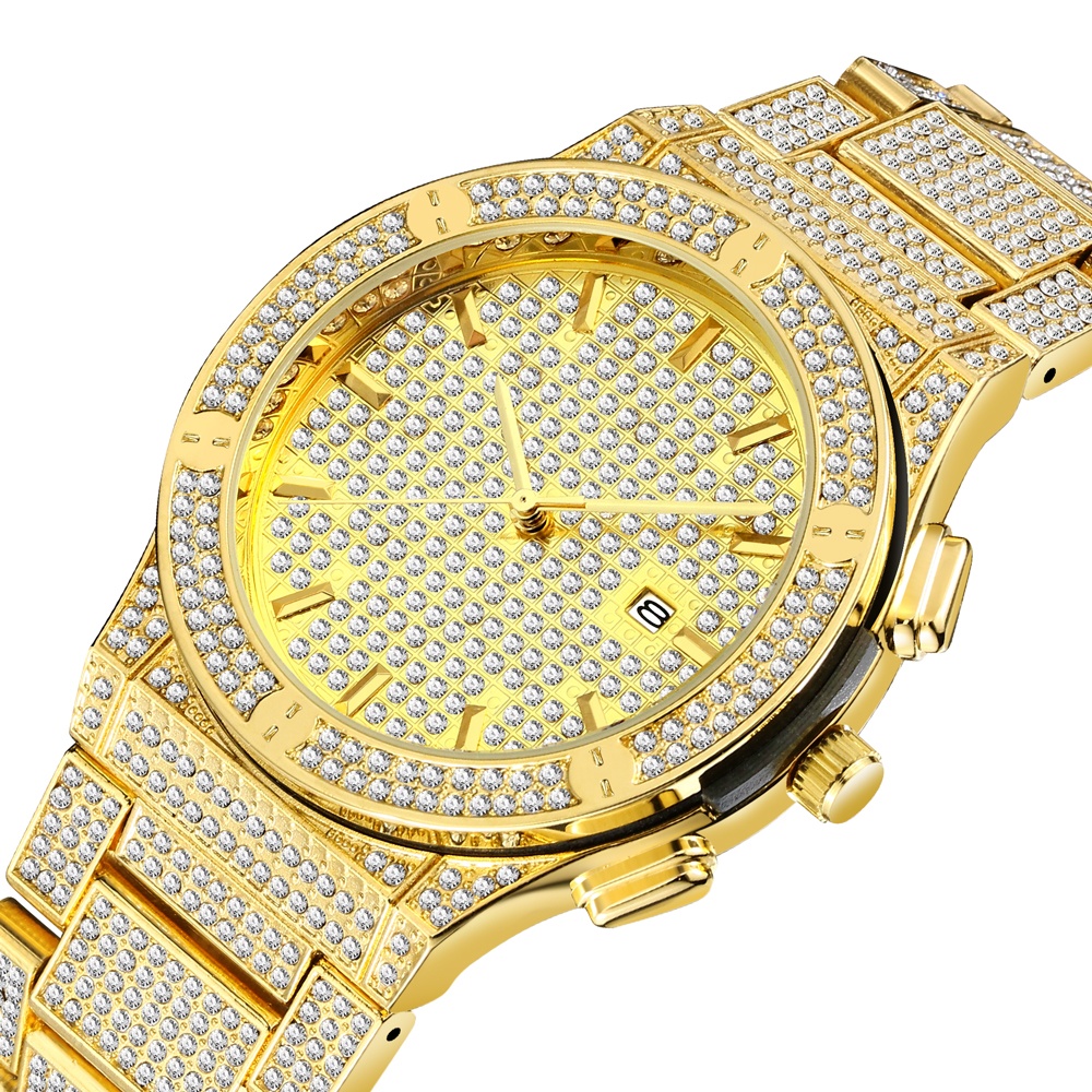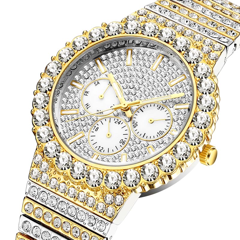 ساعة يد فاخرة للرجال, ساعة يد فاخرة للرجال بأرقام عربية موديل 18k مرصعة بالألماس الكبير مزودة بتقويم