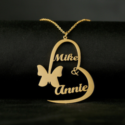 Настроить Высокое качество полированный персонализированное сердце Имя ожерелье бабочка из нержавеющей стали Рождественский подарок ювелирные изделия