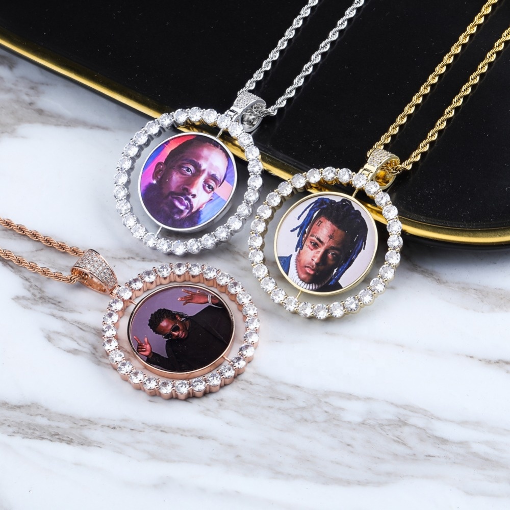 Ciondolo con foto con bottone d'amore Hip Hop con zircone alla moda gioielli di personalizzazione ciondolo circolare